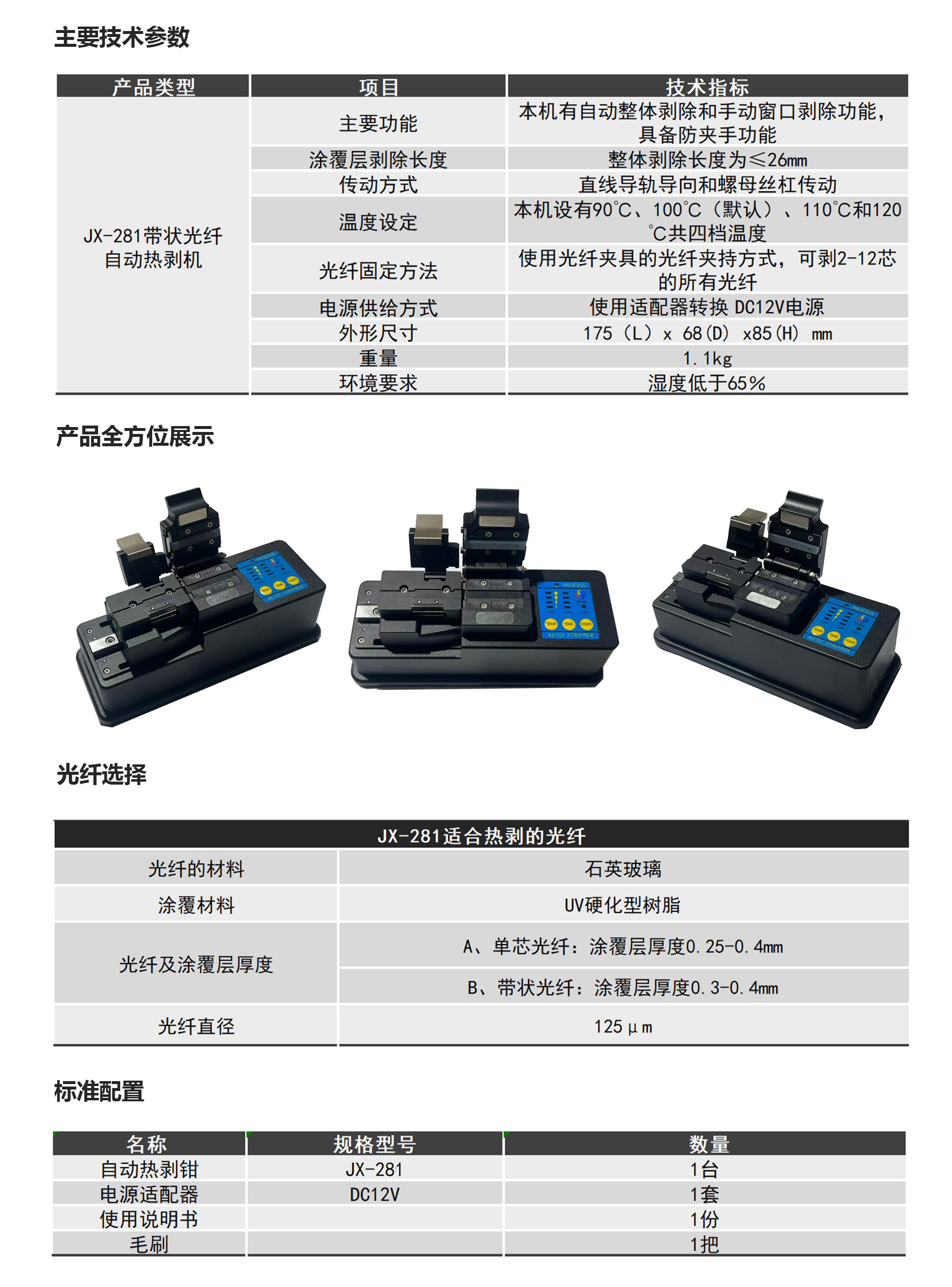 1. 适用剥离2-12芯带状光纤;2. 采用自动剥离方式,消除手动因素影响,性能稳定高效;3. 采用高精度的直线导轨导向和电机直接驱动的热剥方式,确保对光纤无损伤;4. 刀片经久耐用且更换方便;
